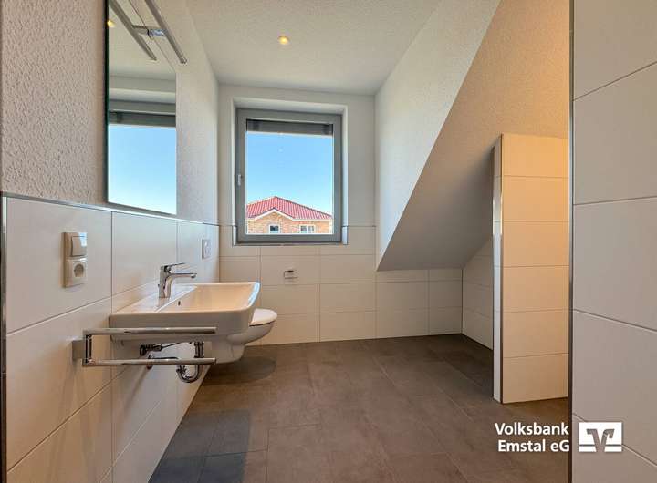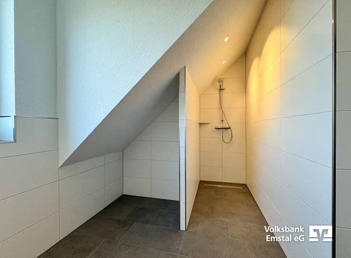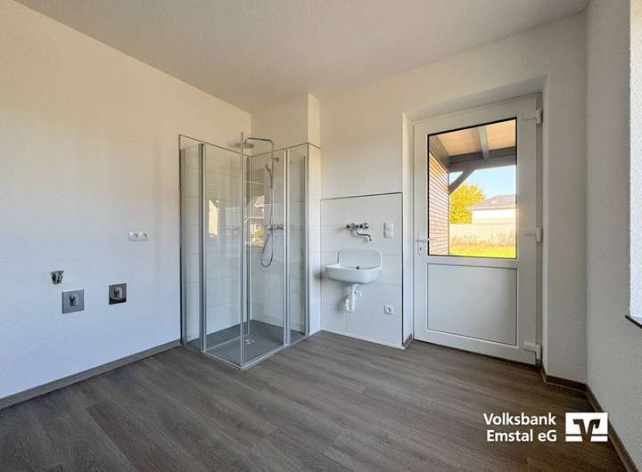 - Hauswirtschaftsraum mit ebenerdiger Dusche sowie Anschlüssen für Waschmaschine und Trockner