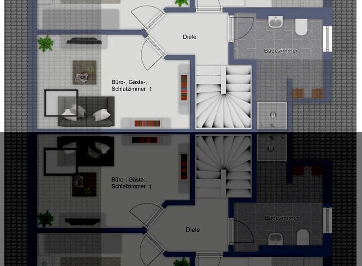 - Zwei weitere Büro-, Gäste-, Schlafzimmer