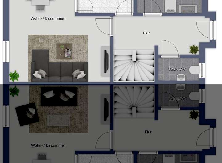 Die Doppelhaushälfte teilt sich wie folgt auf: