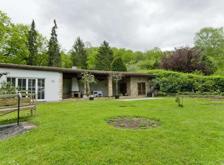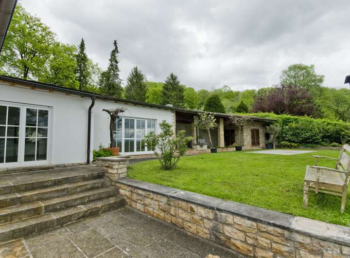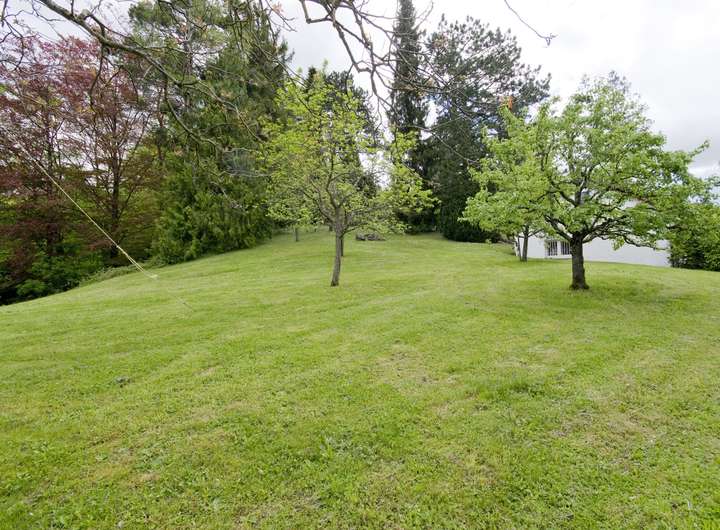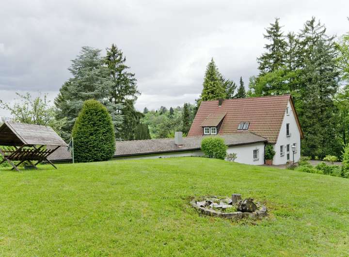 Das Anwesen liegt im Stadtteil Wäldenbronn in schöner Halbhöhenlage oberhalb des Esslinger Höhenweges mit Südwestausrichtung. Aufgrund dieser unverbaubaren Alleinlage genießt man einen traumhaften Ausblick auf die Stadtteile Wäldenbronn, Obertal, Serach, Hohenkreuz, St. Bernhardt, Berkheim sowie auf die Schwäbische Alb. Das Wohnhaus liegt im oberen Teil eines parkähnlichen Gartens mit Laub-, Nadel und Obstbäumen sowie einem liebevoll angelegten Rosengarten. Das Anwesen grenzt im Norden sowie im Südosten an das Landschaftsschutzgebiet, somit gibt es um das Anwesen keine direkte Nachbarbebauung. Die nächste Wohnbebauung liegt unterhalb des Esslinger Höhenwegs.