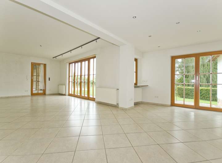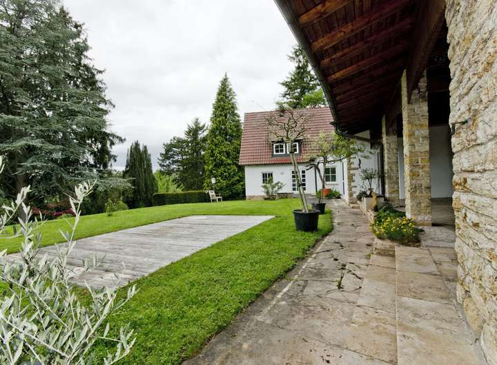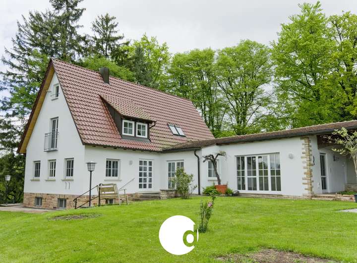 Im Erdgeschoss befinden sich dank der Erweiterung im Jahr 1993 der sehr großzügige mit bodentiefen Fenstern versehene, lichtdurchflutete Wohn- und Essbereich. Von hier aus gelangt man ebenerdig zu dem nach Süden ausgerichteten Freisitz. Aufgrund des direkt angrenzenden ca. 8 m² großen Teehauses genießt man hier zu jeder Jahreszeit die Ruhe und die Natur. Des Weiteren befindet sich neben der Küche noch 2 weitere Zimmer, ein Tageslichtbad sowie einem separaten Gäste WC. Das Obergeschoss dieses Anwesens bietet reichlich Platz mit 2 weiteren Schlafzimmern, einer Ankleide sowie 2 Tageslichtbädern. Der Dachboden darüber wurde ebenfalls ausgebaut und bietet nochmals ausreichend für beispielsweise ein Arbeitszimmer. Das Gerätehaus sowie die Doppelgarage mit elektrischem Torbetrieb runden das großzügige Platzangebot dieser unvergleichlichen Immobilie ab.