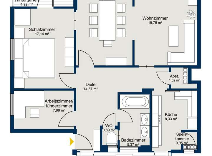 - Ideale, lichtdurchflutete 4-Zimmer-Aufteilung