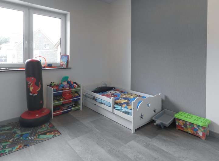 Für die Kinder stehen zwei Schlafzimmer mit einer angenehmen Größe zur Verfügung, diese Zimmer können auch wunderbar als Büro für Ihr Homeoffice genutzt werden. Das 19 m² große Badezimmer bietet genügend Platz für die ganze Familie. Eine ebenerdige Dusche und Anschlüsse für eine Badewanne komplettieren das Angebot. Die gesamte Haustechnik läuft im Hauswirtschaftsraum zusammen. Hier befinden sich auch die Anschlüsse für die Waschmaschine und den Trockner, sowie die Verteilung der Fußbodenheizung.