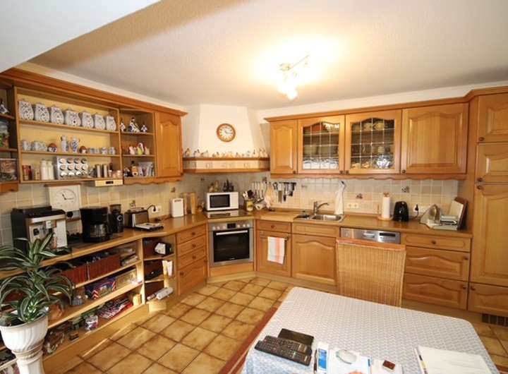 Von der Küche besteht ein Zugang zum Wintergarten, von dort zur Terrasse mit Blick in den Garten.