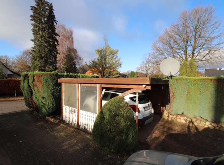 Im Vorgarten stehen ein großer Carport sowie weitere Stellmöglichkeiten, im hinteren Grundstücksteil befinden sich ein zweiter Carport sowie zwei Gartengeräteschuppen.