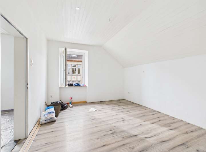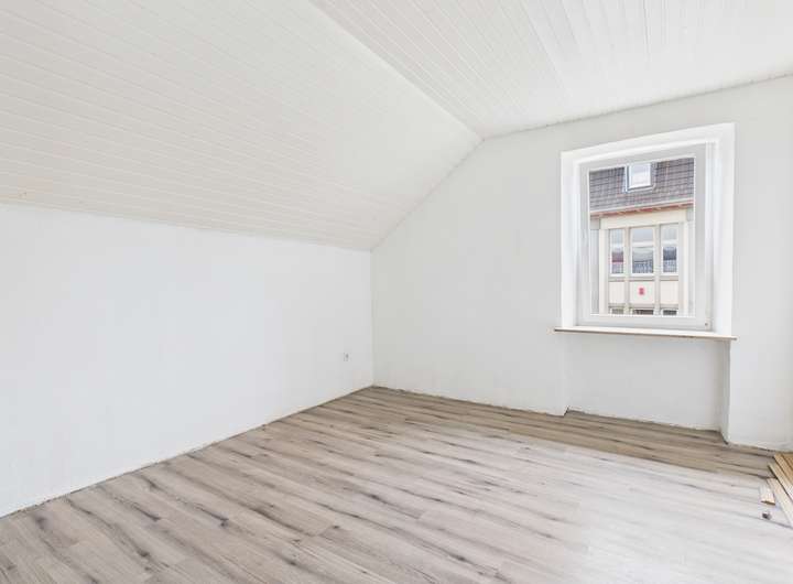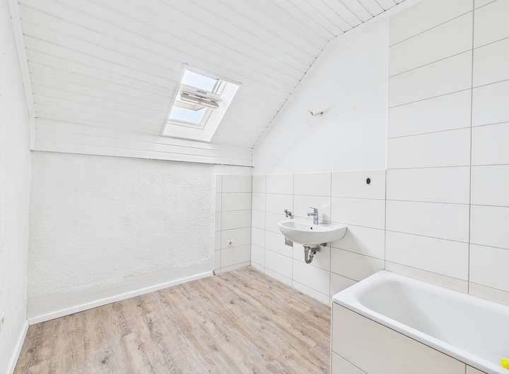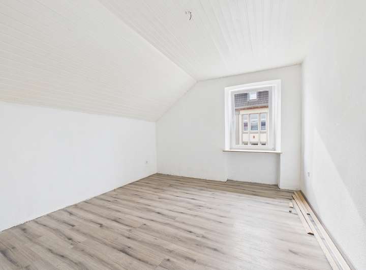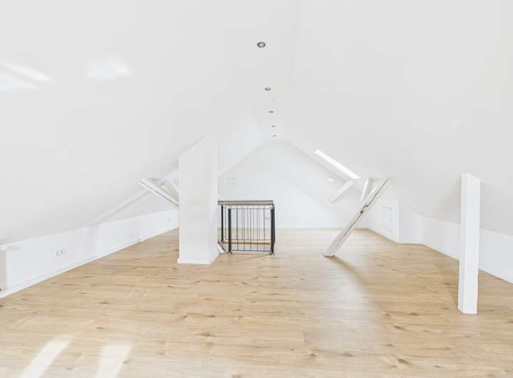Auf der Eingangsebene können Sie sich Ihre Küche gestalten und haben zwei weitere Zimmer zur freien Verfügung. Das Badezimmer besticht mit einem Fenster und einer Badewanne. Außerdem befindet sich auf dieser Etage ein Gäste-WC. Über die innenliegende Treppe gelangen Sie in das absolute Highlight und Herzstück dieser Wohnung - das überaus geräumige Zimmer auf der zweiten Ebene, hier können Sie entweder ein stilvolles Schlafzimmer mit einer Ankleidekombination integrieren, oder sich Ihren persönlichen, gemütlichen Wohnbereich errichten. Die Dachfenster verleihen dem Raum ein besonders warmes Wohngefühl, so dass Sie sich hier direkt Zuhause fühlen werden.