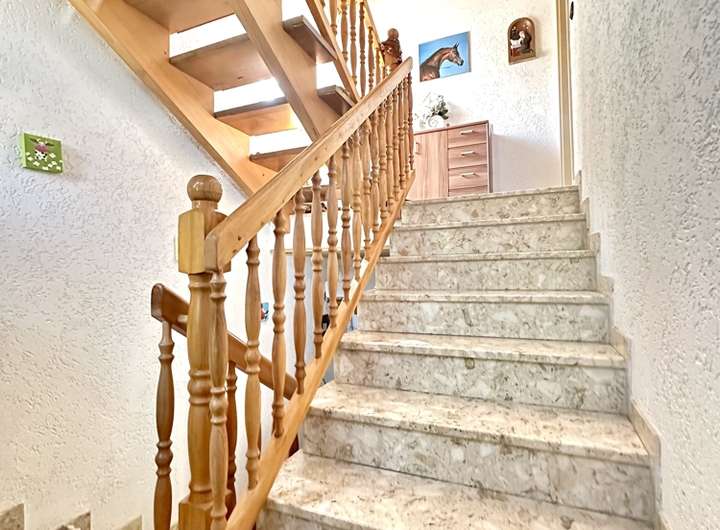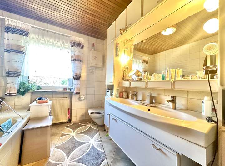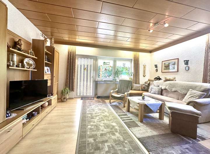 Das 1984 erbaute, gepflegte Einfamilienhaus umfasst ca. 120 m² Wohnfläche in solider Bauweise. Eine moderne Pelletheizung (2020) mit Pufferspeicher und Solarthermie sorgt für umweltfreundliche Wärme, ergänzt durch einen Kachelofen im Wohnbereich (Einsatz noch nicht getauscht). Das Dachgeschoss könnte ggf. noch ausgebaut werden und eröffnet Potenzial für eine zweite Wohnebene – ideal für wachsende Familien, Gäste oder ein Homeoffice mit Blick ins Grüne. Das Untergeschoss bietet zusätzlichen Stauraum und weitere ausgebaute Zimmer.