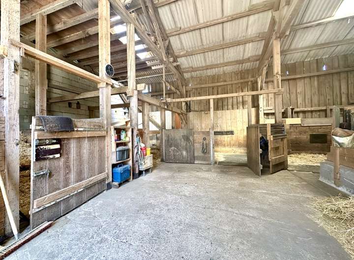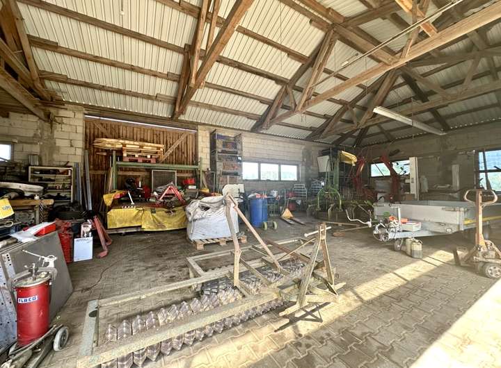 - großzügige und hohe Halle (ca. 10 x 20m) mit Stalltrakt (bis zu 7 großzügigen Pferdeboxen möglich)