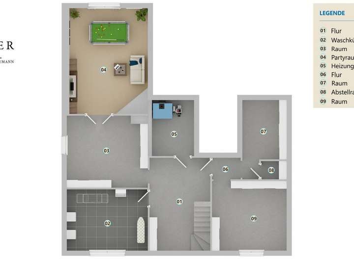 Der ca. 80 m² große Vollkeller bietet neben Technik- und Vorratsräumen auch einen großzügigen Raum mit Partykeller-Charakter. Direkt gegenüber liegt der beheizbare Anbau mit separatem Zugang – bestens geeignet für Büro, Atelier oder kleines Gewerbe. Besonders praktisch: ein separates WC mit Handwaschbecken, ideal bei Feiern oder Kundenbesuchen.