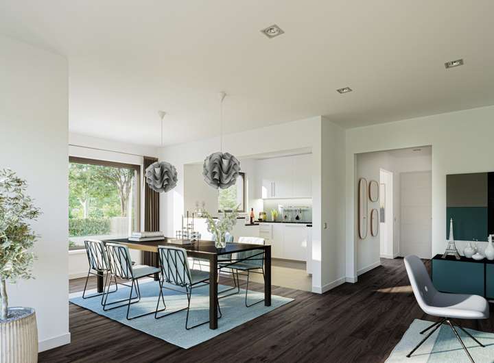 Im EVOLUTION 165 erleben Sie eine durchdachte Aufteilung: Mit fünf Zimmern, die sowohl Raum für ein gemütliches Familienleben als auch für individuelle Rückzugsmöglichkeiten bieten, ist dieses Haus ideal für anspruchsvolle Familien. Die lichtdurchfluteten Räume schaffen eine einladende Atmosphäre, während der durchdachte Grundriss optimale Bewegungsfreiheit ermöglicht. Besonders hervorzuheben ist die flexible Nutzung der Räume, die sich an Ihre Bedürfnisse anpassen lassen - sei es als Kinderzimmer, Arbeitszimmer oder Gästezimmer.