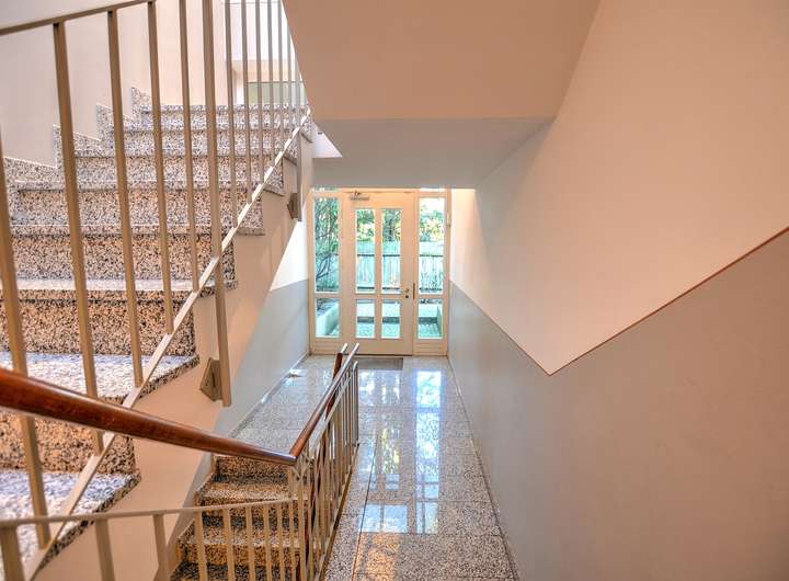 Die frisch modernisierte Dachgeschosswohnung befindet sich in einem äußerst gepflegten Haus in begehrter Lage von Grünwald. Bereits der einladende Eingangsbereich des Hauses vermittelt einen eleganten ersten Eindruck. Über das Treppenhaus erreicht man das zweite Obergeschoss und damit den Zugang zur Wohnung.