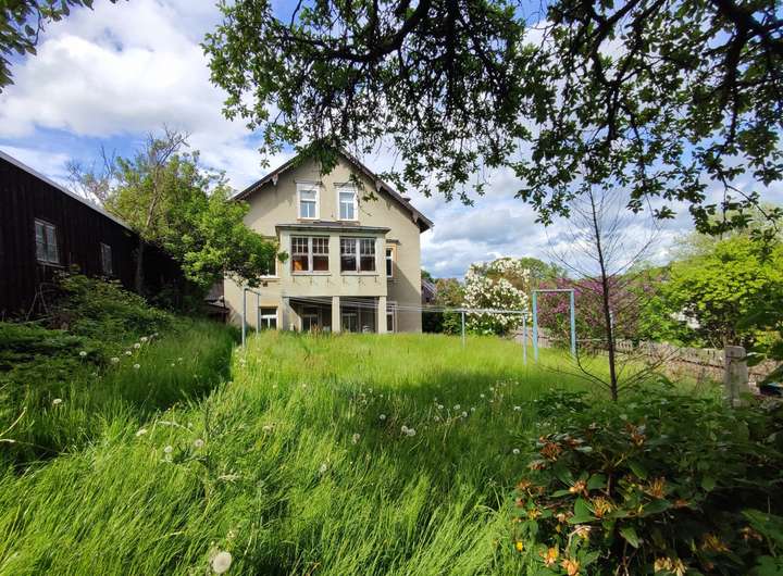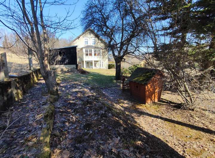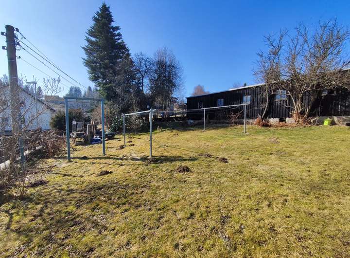 Ein schöner großer Garten bietet viel Platz für Gestaltungsmöglichkeiten. Eine Rasenfläche steht für die Kinder zum Spielen und zum Wäsche trocknen zur Verfügung, alter Baumbestand, Obstbäume und Sträucher spenden Schatten und für eine Terrasse zum Entspannen und Grillen mit Freunden findet sich auch eine Ecke. Ein großes Nebengebäude lässt sich wieder herrichten für Lagermöglichkeiten, Werkstatt oder anderes.