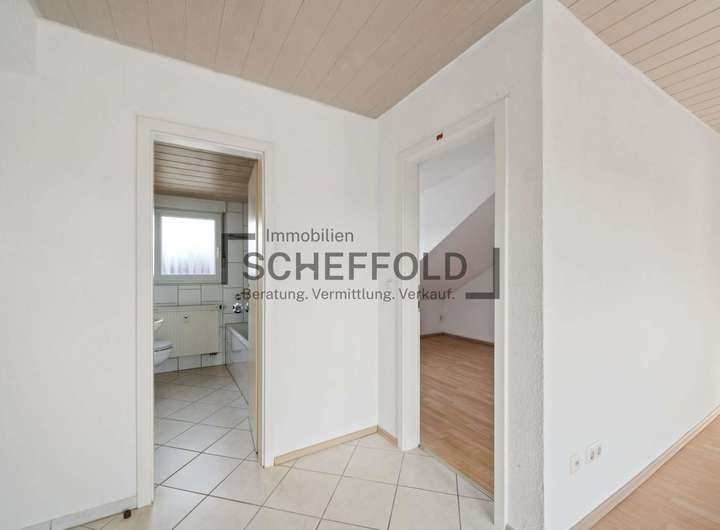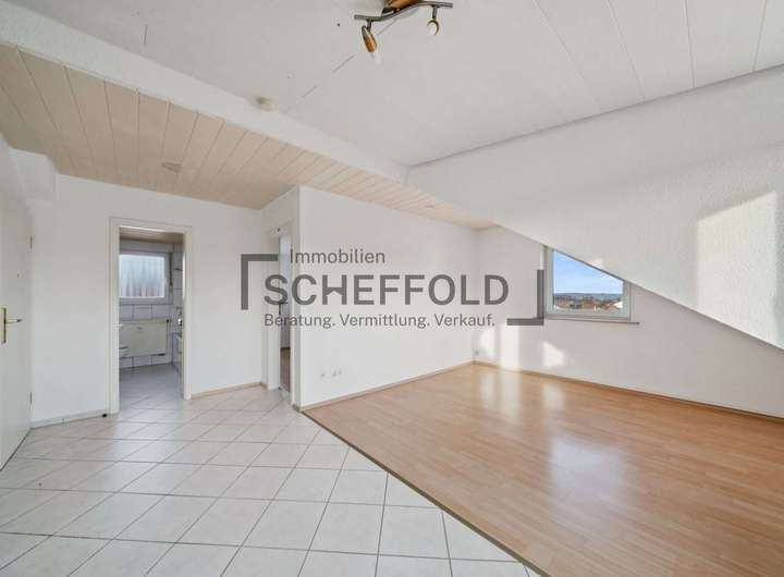 Über das gemeinschaftliche Treppenhaus gelangen Sie in das Dachgeschoss des Wohnhauses und begeben sich in eine charmante Wohlfühloase mit wunderbarer Aussicht. Hier punktet die klare, durchdachte Raumnutzung – ideal für Paare, kleine Familien oder als attraktive Kapitalanlage.