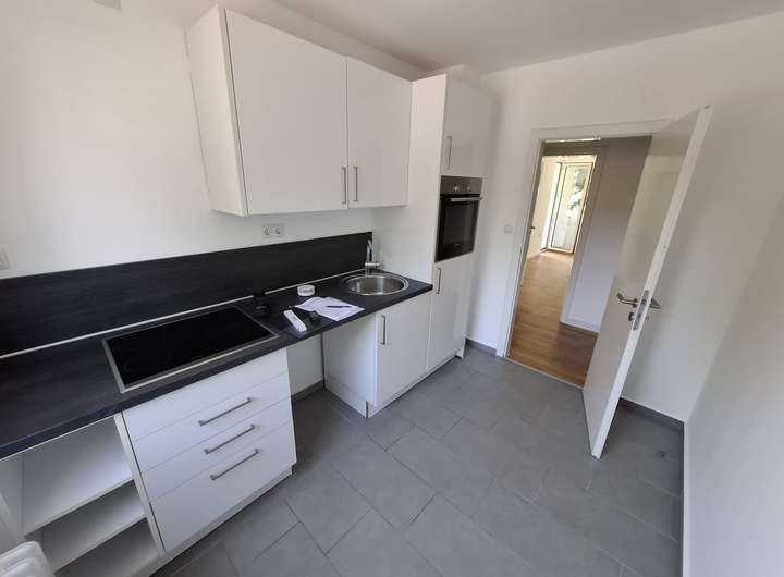 Die Küche ist mit einer modernen Einbauküche inklusive Spülmaschinenanschluss ausgestattet, die dem Mieter zur Nutzung überlassen wird.