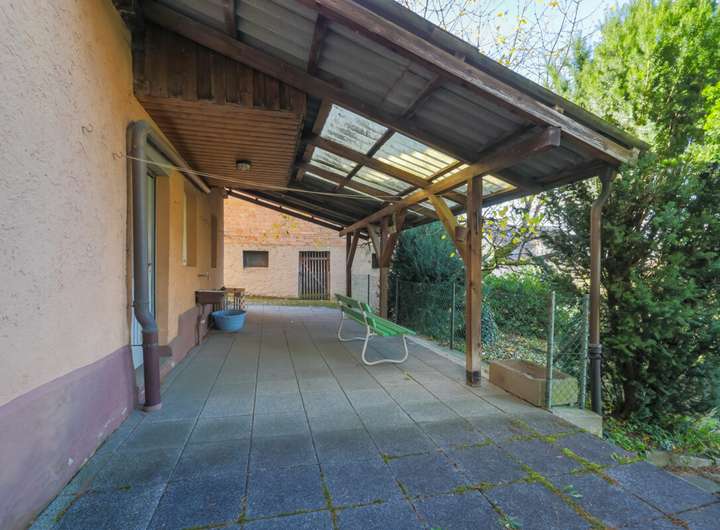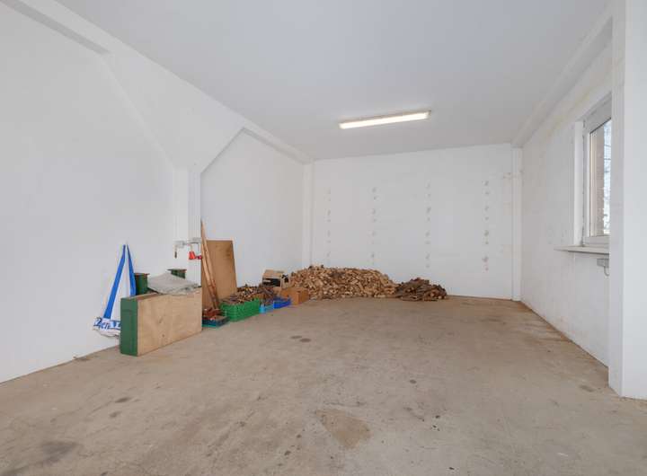 An das Wohnhaus angebaut ist ein überdachter Abstell-/Eingangsbereich mit abgeschlossenem Lagerraum und einem Party-/Hobbyraum. Weitere Nutzflächen stehen im Untergeschoss des Anbaus zur Verfügung.