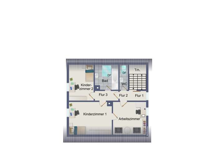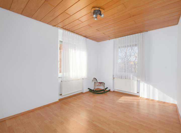 Die Wohnung im Ober- und Dachgeschoss verfügt insgesamt über eine Wohnfläche von ca. 125 m². Sie ist wie folgt aufgeteilt: OG: 3 Zimmer, Küche und Gäste-WC; DG: 3 weitere Zimmer, ein WC sowie ein Tageslichtbad mit Dusche und Badewanne.