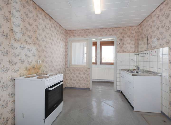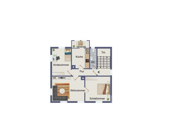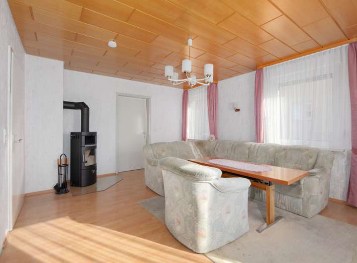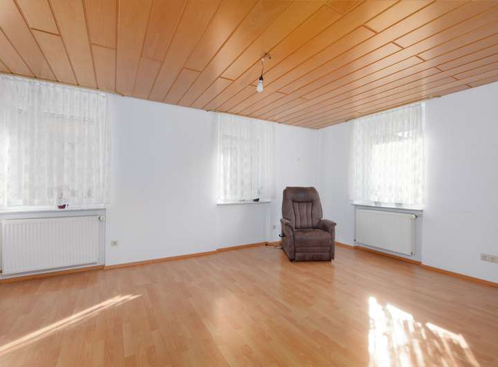 Vorhanden ist im Erdgeschoss eine 3-Zimmer-Wohnung mit Küche, Veranda und Duschbad. Die Wohnfläche beträgt ca. 64 m².