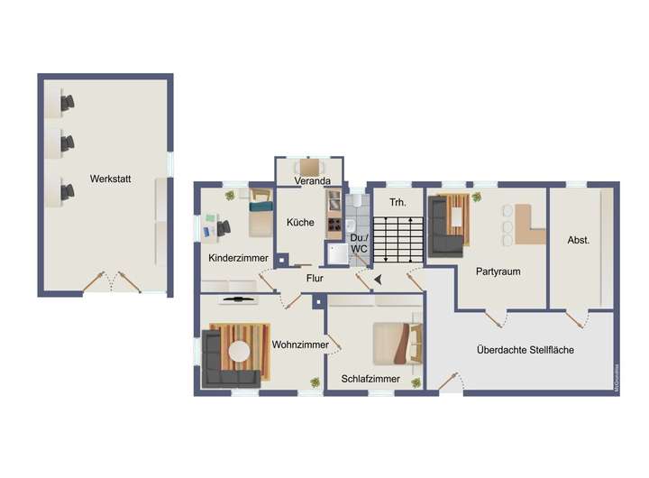 Weiterhin ist ein sep. Werkstattgebäude mit einer Nutzfläche von ca. 43 m² und hoher Decke vorhanden. Dieser Bereich ist ebenfalls unterkellert.