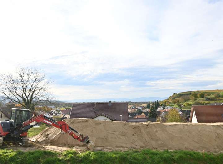 In Malterdingen entsteht aktuell das kleine Neubaugebiet "Am Boll" mit lediglich 3 Bauplätzen. Dieses attraktiv gelegene Grundstück befindet sich auf einer kleinen Anhöhe am Ortsrand und überzeugt mit einem traumhaften Panoramablick über die idyllische Landschaft des nördlichen Breisgaus bis zu den Vogesen.