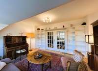 Die Wohnung ist vollständig möbliert und sofort bezugsbereit. Sie bietet einen großzügigen Flur, einen hellen Wohnbereich, ein separates Schlafzimmer, eine Küche mit kompletter Grundausstattung sowie ein modernisiertes Badezimmer mit großer Dusche. Die antike Glastür zwischen Wohnzimmer und Küche setzt einen stilvollen Akzent. Zahlreiche Fenster sorgen für viel Tageslicht und einen schönen Süd-Blick in den großen Garten.