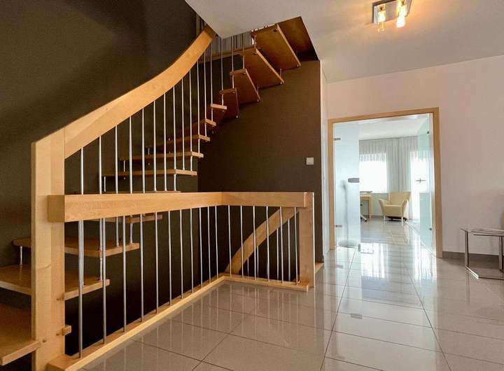 - ca. 122 qm Wohnfläche mit 3 Zimmern im EG (teilweise offene Räume) ca. 90 qm Wohnfläche mit 3 Zimmern im DG - zzgl. ein Ankleidezimmer und Spielflur/Arbeitsbereich