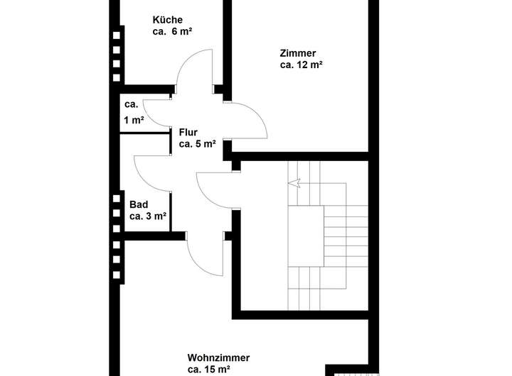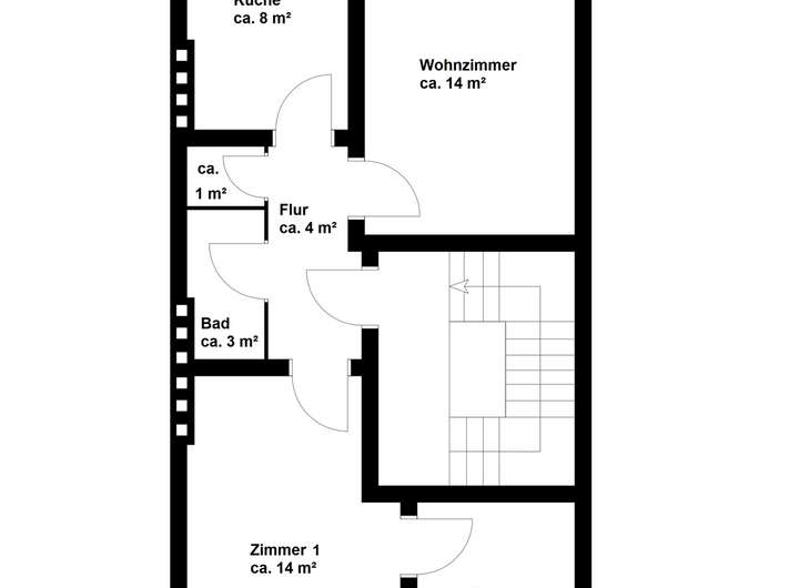 Die vier Wohneinheiten verfügen jeweils über zwei bis drei Zimmer, eine Küche, ein Bad und bis auf die Dachgeschosswohnung über einen Balkon.