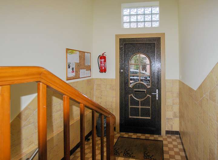 - 2021 und 2022 Parterre und 1. OG, Windfang und Treppenhaus: Teilweise Erneuerung der Zimmertüren, Erneuerung der Decke im Parterre mit Schallisolierung zwischen Parterre und 1. OG, Fußboden im 1. OG nach Brandschutz VO.