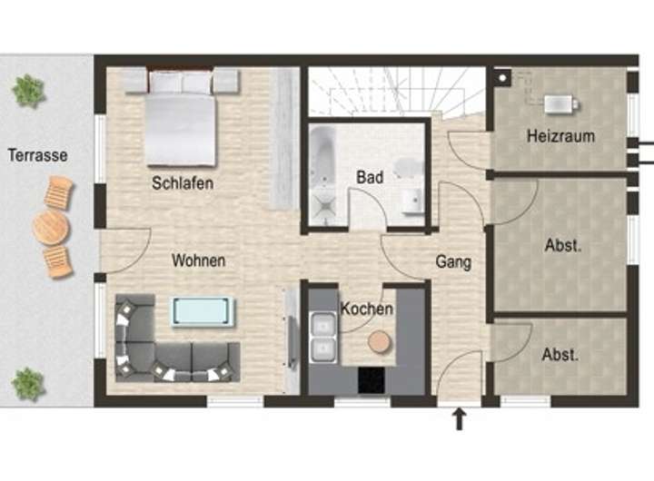 - Besondere Ausstattungen sind der vorhandene Abstellraum und die zusätzliche Speisekammer.