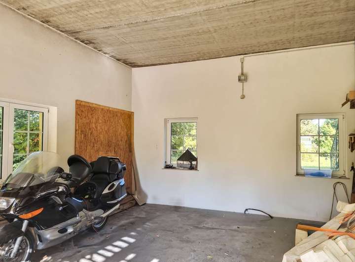 Im Erdgeschoss empfängt Sie ein praktischer Eingangsbereich mit direktem Zugang zu zwei großen Garagen – eine davon verfügt über eine Arbeitsgrube. Zudem finden Sie hier einen Hauswirtschaftsraum sowie den Heizungsraum mit Zugang zum Keller. Die großzügigen Garagen bieten nicht nur ausreichend Stellplatz für Fahrzeuge, sondern auch viel Platz für Werkzeuge und Lagermöglichkeiten. Zwei weitere Stellplätze befinden sich vor dem Haus.