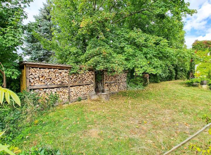 Das großzügige Wohnzimmer besticht durch einen Kamin und einen direkten Zugang zur großen in Richtung Westen ausgerichteten Terrasse (43,91 m²), die mit einer Markise ausgestattet ist. Über eine Außentreppe gelangt man in den 244 m² Gartenbereich der den zukünftigen Eigentümern zur Verfügung steht. Durch die frei nutzbaren Nebenflächen vergrößert sich dieser Anteil nochmal.