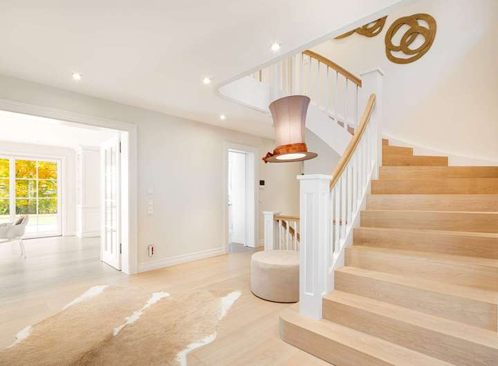 - Massives Treppenhaus mit Eichenholz-Trittstufen und Eichenholz-Handlauf