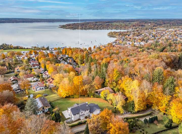 Die exklusiv von uns angebotene Villa befindet sich in herrlich sonniger, absolut ruhiger Lage, eingebettet in traumhafte Natur und idyllisch nahe dem Waldrand. Das parkartige Grundstück genießt eine ideale Südwest-Ausrichtung. Von allen Ebenen der Villa eröffnet sich ein fantastischer Panoramablick auf den Ammersee. Auch spektakuläre Sonnenuntergänge kann man von hier bewundern.