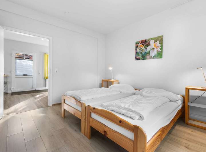 Im Erd- und Obergeschoss befinden sich drei vollständig ausgestattete Ferienwohnungen, die jeweils über moderne Bäder, separate Wohn- und Schlafbereiche und ansprechende Ausstattungen verfügen. Eine weitere Einheit wird derzeit als Hausmeisterwohnung genutzt und sichert den reibungslosen Betrieb im Ferienvermietungsalltag.