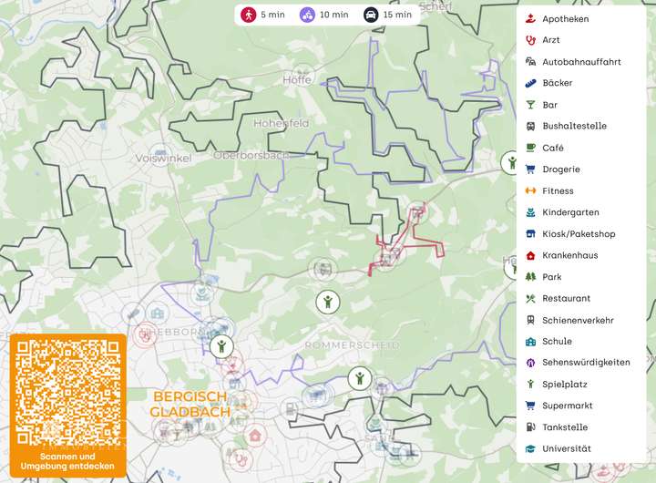 Die Lage zeichnet sich durch eine angenehme Kombination aus ruhigem Wohnen und guter Anbindung aus. Einkaufsmöglichkeiten, Schulen, Kindergärten und medizinische Versorgung sind in Bergisch Gladbach und den umliegenden Ortsteilen gut erreichbar.