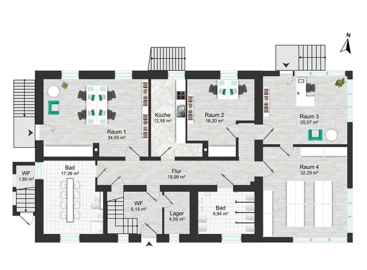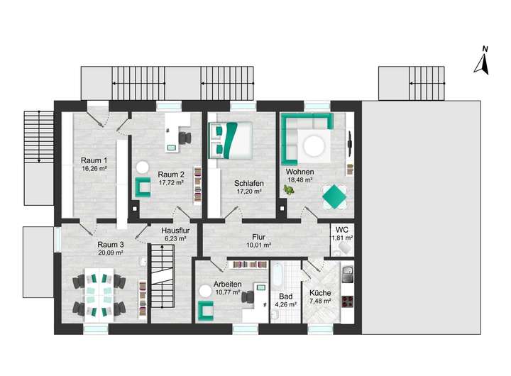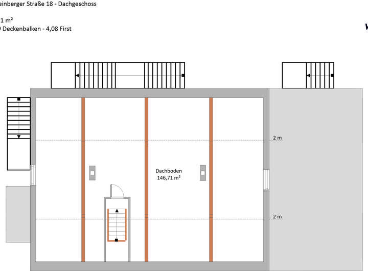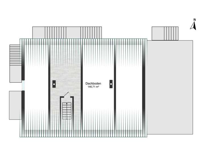 Im Dachgeschoss stehen zudem rund 145 m² Grundfläche als weitere Ausbaureserve zur Verfügung – ein wertvoller Bonus für künftige Erweiterungswünsche.