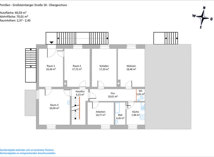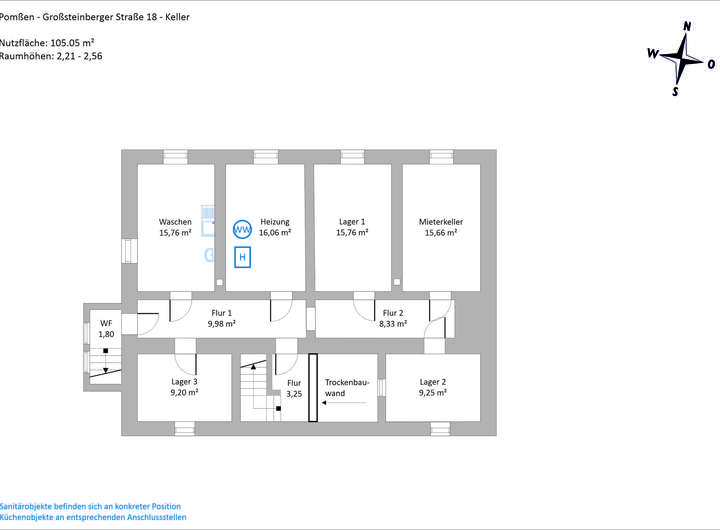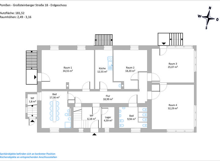Der gesamte Keller (bis auf einen Mieterkeller), das komplette Erdgeschoss sowie die freie Hälfte des Obergeschosses bieten flexible Fläche zur individuellen Gestaltung. Ob Wohnen, Praxis, Büro oder eine Kombination aus mehreren Nutzungsarten – nahezu alles ist denkbar. Zwei vorhandene Bäder sowie eine Küche im Erdgeschoss bilden eine solide Basis für unterschiedlichste Konzepte. Neben dem Rückbau der kindgerechten Sanitäreinrichtungen und üblichen Renovierungsarbeiten hängt der Umfang der nötigen Sanierungen im Wesentlichen von der gewünschten Nutzung ab.