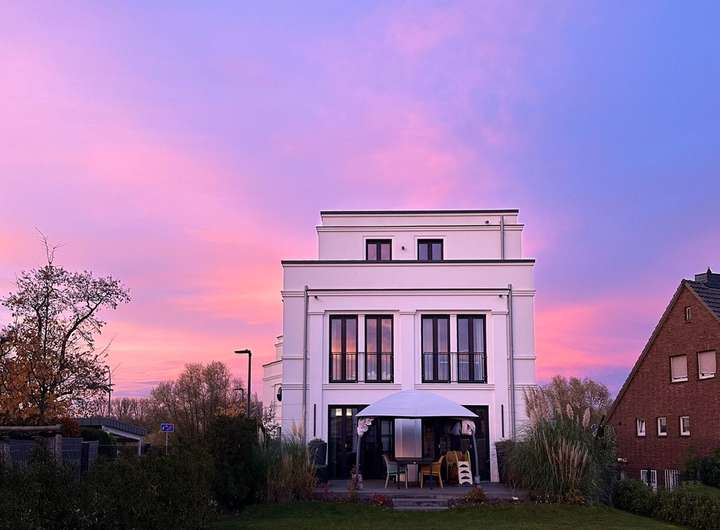 Die Villa befindet sich in Dormagen, nur wenige Schritte vom Rhein entfernt. Die unmittelbare Rheinnähe bietet täglichen Zugang zu herrlichen Spazierwegen, Natur, Wasser und Ruhe, ein Luxus, der selten geworden ist. Durch die strategisch ideale Lage zwischen zwei Großstädten profitieren Sie zusätzlich von einer hervorragenden Verkehrsanbindung: