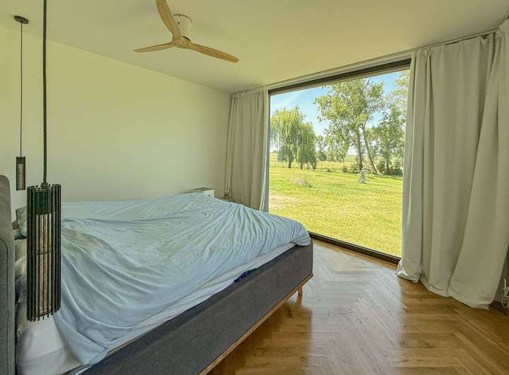Im Elternschlafzimmer starten Sie den Tag mit einem traumhaften Ausblick ins Grüne. Ein Deckenventilator sorgt in warmen Nächten für ein angenehmes Klima, während die direkt angrenzende Ankleide nicht nur viel Stauraum bietet, sondern auch Raum für ein Homeoffice schaffen kann.