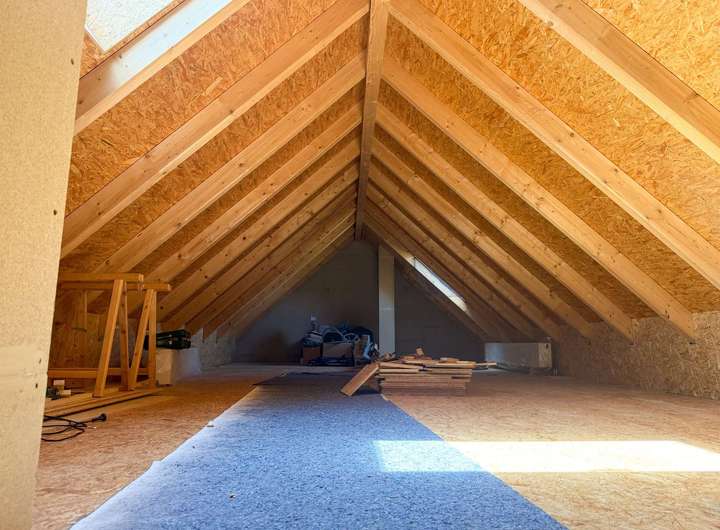 Zwei voneinander getrennte, gedämmte Dachböden bieten zusätzlichen Stauraum. Der kleinere ist über die Ankleide erreichbar, der größere über den großzügig dimensionierten Hauswirtschaftsraum, der Platz für Waschmaschine, Trockner und vieles mehr bietet. Dank seiner komfortablen Deckenhöhe bietet Letzterer sogar echtes Ausbaupotenzial – ideal etwa für ein zusätzliches Arbeits-, Gäste- oder Hobbyzimmer.