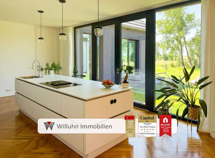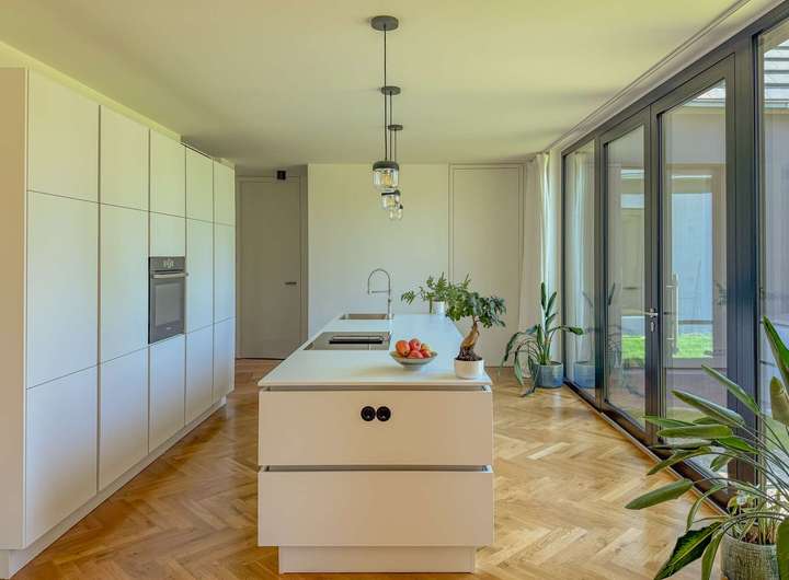 Die hochwertige Küche ist ein echtes Highlight – sie ist im Kaufpreis enthalten und begeistert mit erstklassigen Geräten: darunter ein Siemens-Induktionskochfeld mit integriertem Dunstabzug sowie ein moderner Herd von Bosch. Ein Ort, der sowohl Hobbyköche als auch Designliebhaber überzeugt.