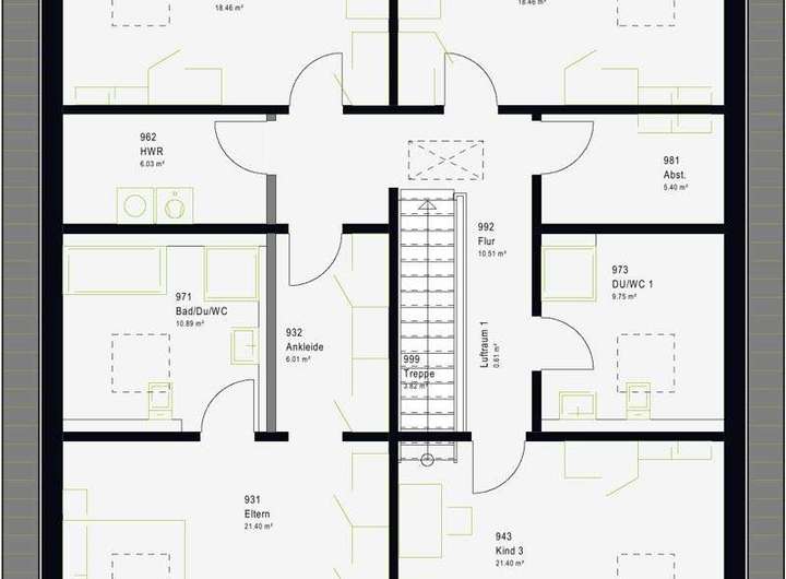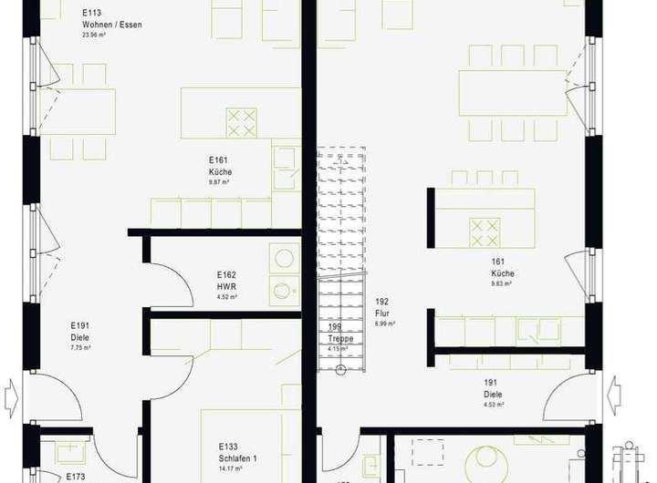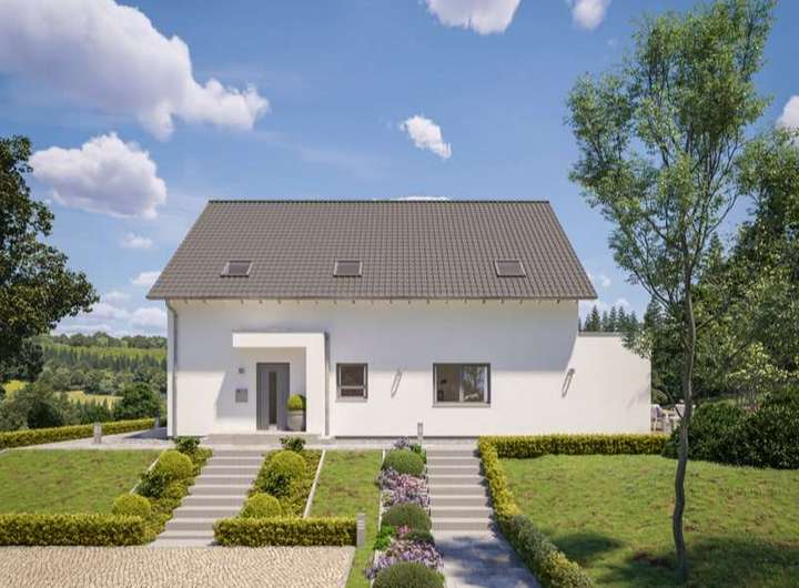Funktional und ansprechend zugleich: Das FamilyStyle 26.02 S verbindet Design mit Wohnlichkeit. So finden mehrere Generationen auf 264,62 m² reichlich Raum, harmonisch miteinander zu wohnen. Die Einliegerwohnung im Erdgeschoss verfügt ebenso über einen offenen Koch-, Ess- und Wohnbereich wie die zweite Wohneinheit, die über zwei Etagen des Mehrgenerationenhauses angelegt ist. Darüber spannt sich das Satteldach, das dem Haus eine klassische und zeitlose Ästhetik verleiht.