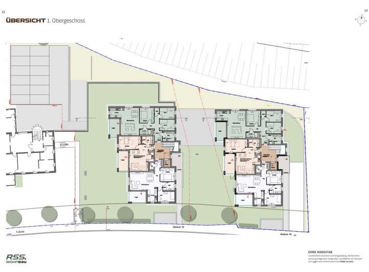 Die beiden Mehrfamilienhäuser überzeugen durch die moderne Architektursprache, großflächige Loggien/ Terrassen/ Dachterrassen. Die bodentiefen Fenster sorgen für das besondere Wohnambiente.