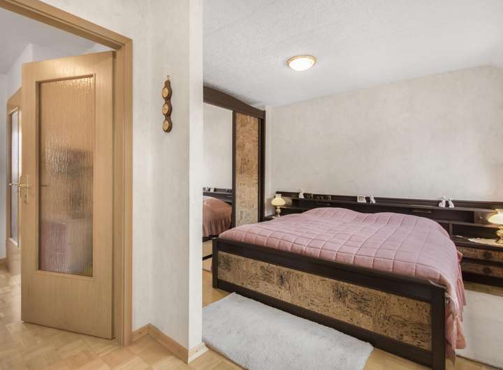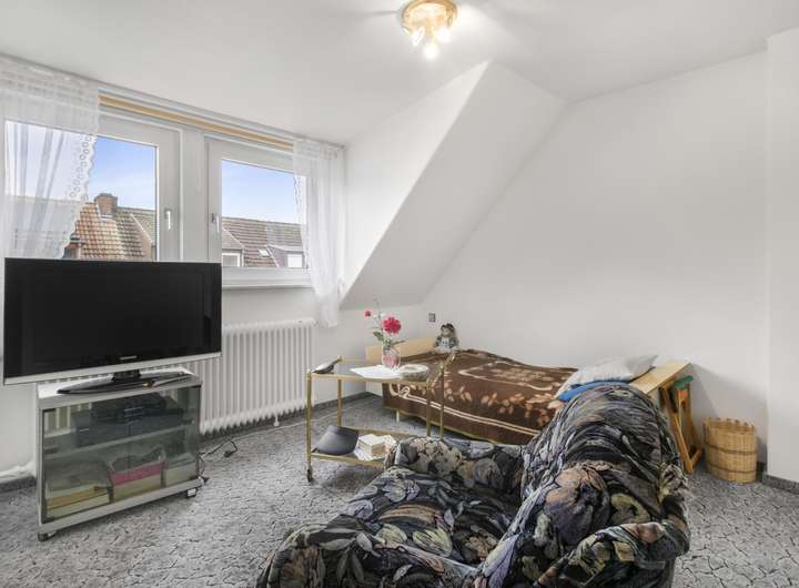 Ein ausgebautes Dachgeschoss erweitert die Wohnfläche um einen weiteren, flexibel nutzbaren Bereich – ideal als Schlafzimmer, Büro oder Hobbyraum. Praktisch ist außerdem ein separater Zugang vom Außenbereich direkt in den Keller, was zusätzliche Flexibilität für die Nutzung von Lager- oder Arbeitsräumen ermöglicht.
