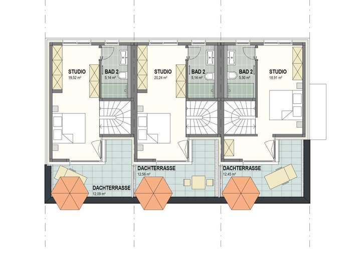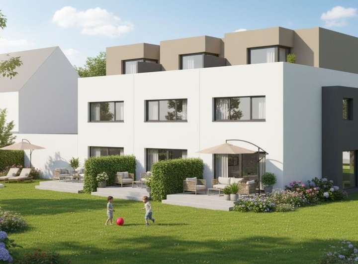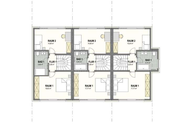 Tolles Baugrundstück in 2. Reihe der Freudenbergstraße! Auf 620 m² sonnigem Grundstück können Sie 3 Reihenhäuser mit jeweils circa 120 m² Wohnfläche plus Keller und Stellplatz errichten. Die gute Ausnutzung von GRZ 03 und GFZ 06 macht das möglich. Wie hier im Beispiel befindet sich im Erdgeschoss der schöne Wohn-Essbereich mit Küche und Terrasse, im 1 Obergeschoss 3 Schlafzimmer und Bad und ein tolles Studio im Dachgeschoss!