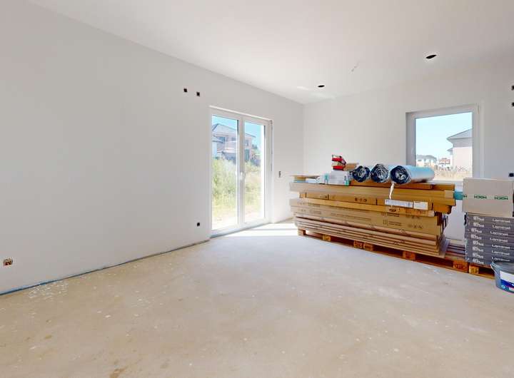 Das ganze Haus verfügt über eine moderne Fußbodenheizung und wird mit einer Wärmepumpe beheizt. 2 Stellplätze vor dem Haus runden hier das Bild ein wenig ab.