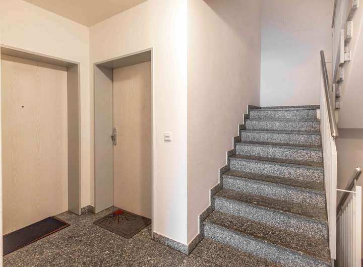 Über die Treppe im Flur erreichen Sie den unteren Bereich der Wohnung. Dort befinden sich ein weiterer Flur, ein Badezimmer, ein Abstellraum. Ein großzügiger Hobbyraum, der vielfältige Nutzungsmöglichkeiten bietet, zum Beispiel als Büro, Fitnessbereich oder zusätzlicher Rückzugsort.