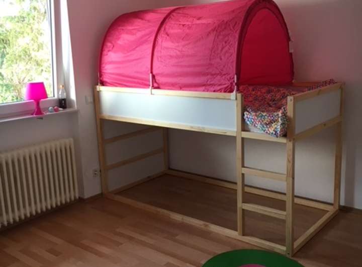 Das Obergschoß verfügt über Elternschlafzimmer und zwei Kinderzimmer, Bad und einen Balkon.