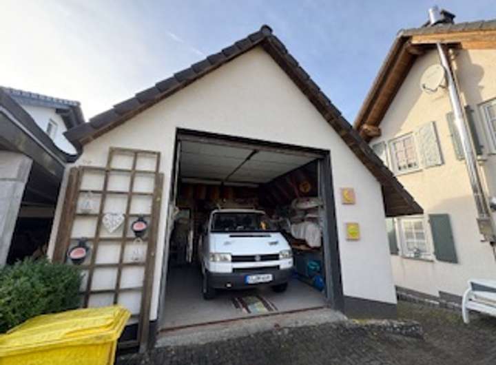 Zum Haus gehört eine große, hohe unterkellerte Garage.