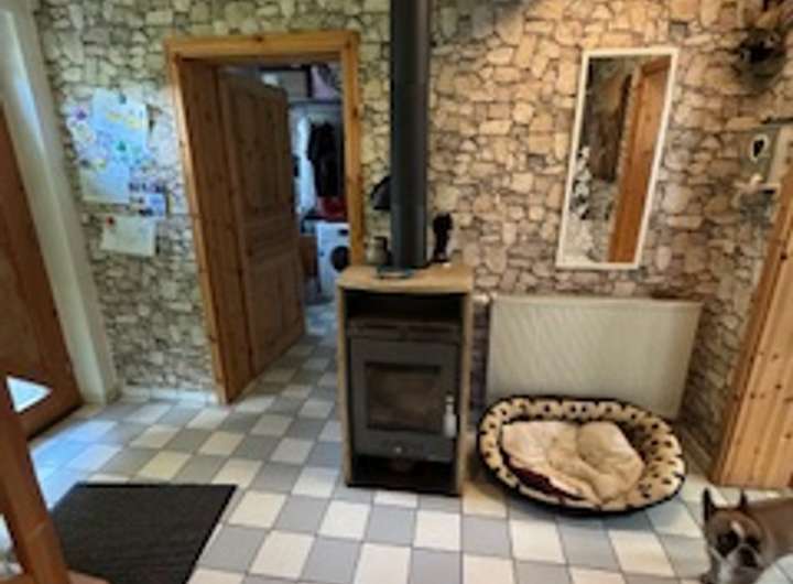 Im Flur steht der Holzofen, dieser sorgt für eine angenehme Grundwärme im gesamten Haus. Die Ölheizung ist neu, arbeitet unterstützt mit der Solaranlage auf dem Dach sehr verbrauchsarm.