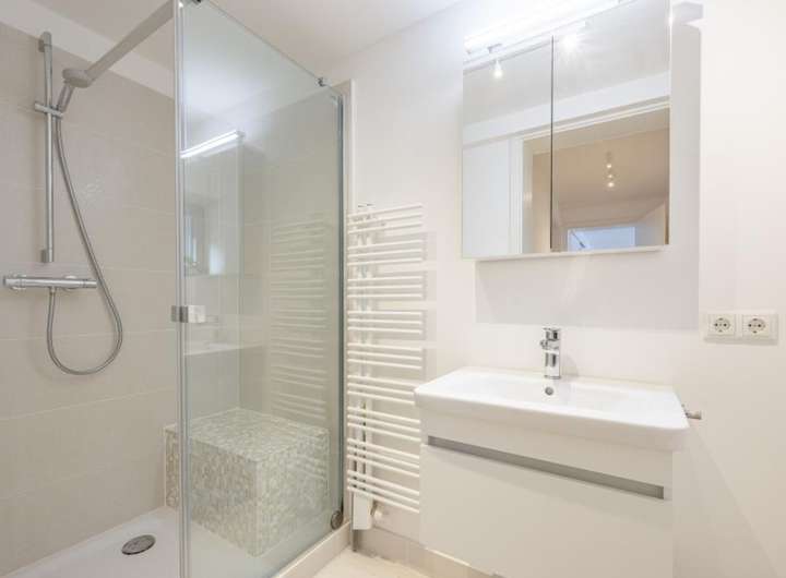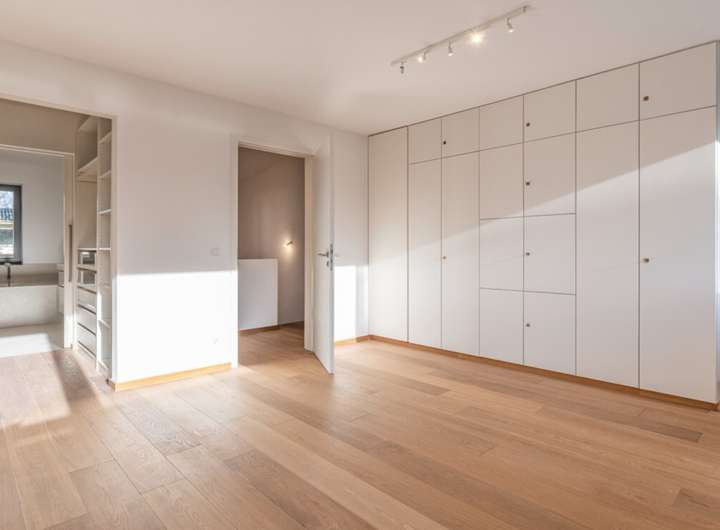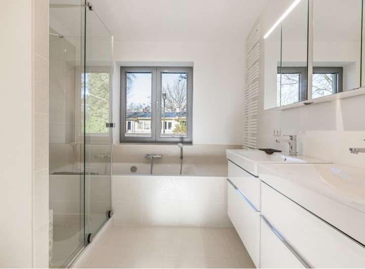 Die Bäder überzeugen durch moderne Armaturen, elegante Fliesen und ein ansprechendes Design. Das große Hauptschlafzimmer verfügt über einen Einbauschrank sowie ein eigenes Bad mit Badewanne.